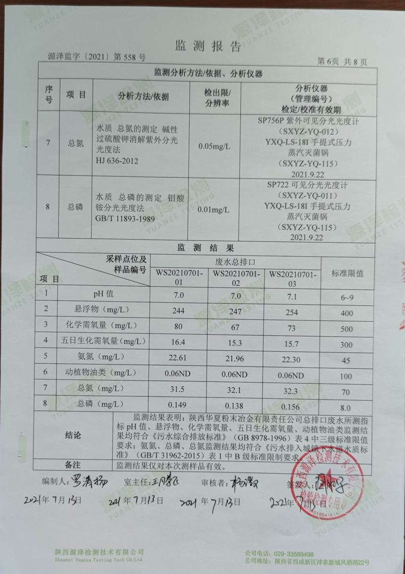 2021年7月13日環(huán)境監(jiān)測(cè)報(bào)告